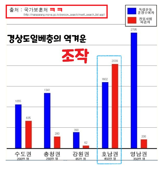 전라도 친일파 많다고 조작자료 올려놓고